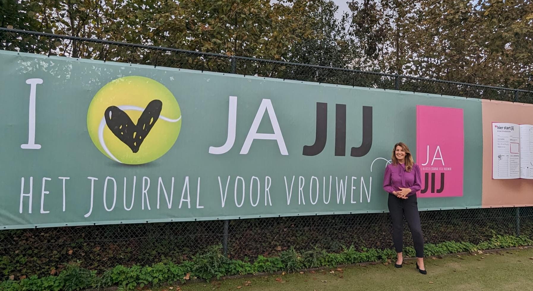 We hebben een nieuwe doeksponsor. Vanaf nu hangt er een mooi doek van tennislid Nina van Arum en haar JA JIJ Journal op het park.